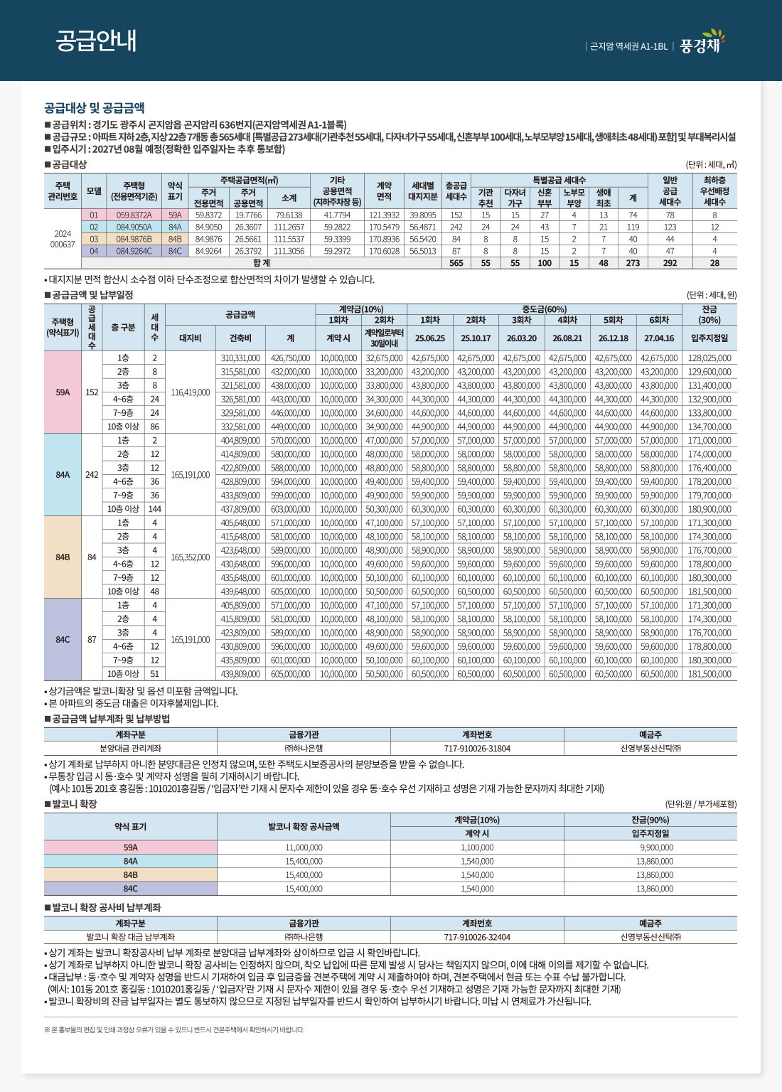 총 565세대이고 59와 84타입으로만 구성되어 있습니다.