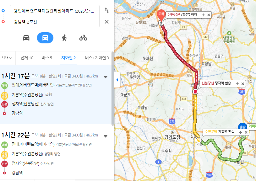 대중교통은 강남역 1시간 20여분(버스 1시간)