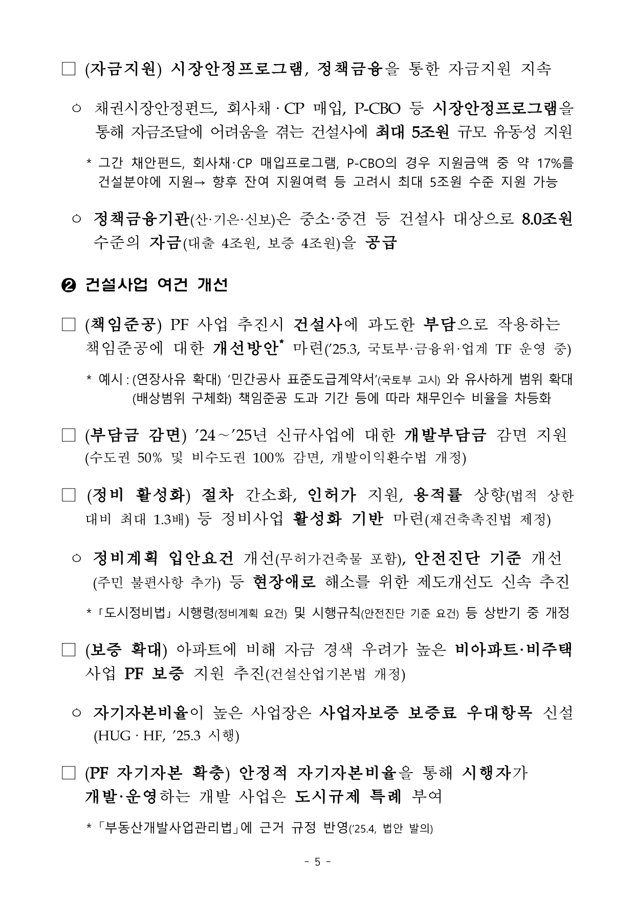 - 책임준공 부담 완화: PF 사업 책임 부담 개선 추진.