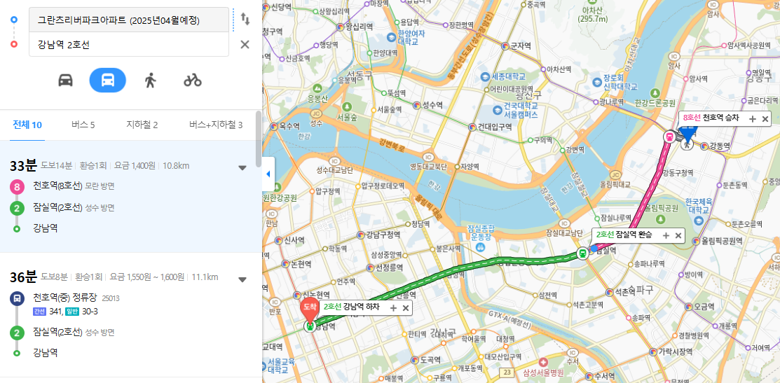 주요 직장까지의 거리는 강남 35분 / 시청 40분 내외입니다.