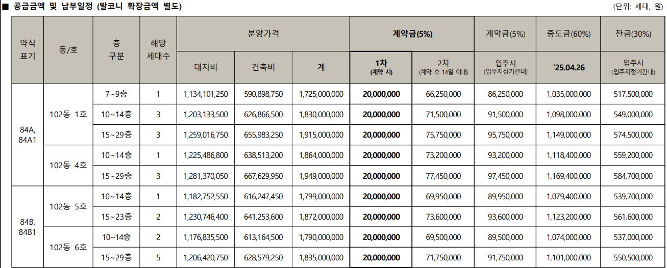 비슷한 시기에 입주하는 아파트들 중에서는 가장 가격이 비싼 것 같습니다.