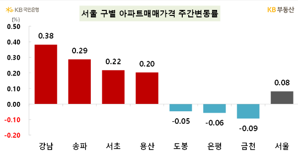 전국 시도별 아파트매매가격은 서울과 전북만 상승했고, 서울은 구별로 볼 때 강남, 서초, 용산, 송파구가 상승률을 이끌었습니다. 강남구는 토허제 해제 이후 매도자들이 매물을 걷어들였고, 원래 토허제에 해당되지 강남 다른동까지 상승세가 이어졌습니다.