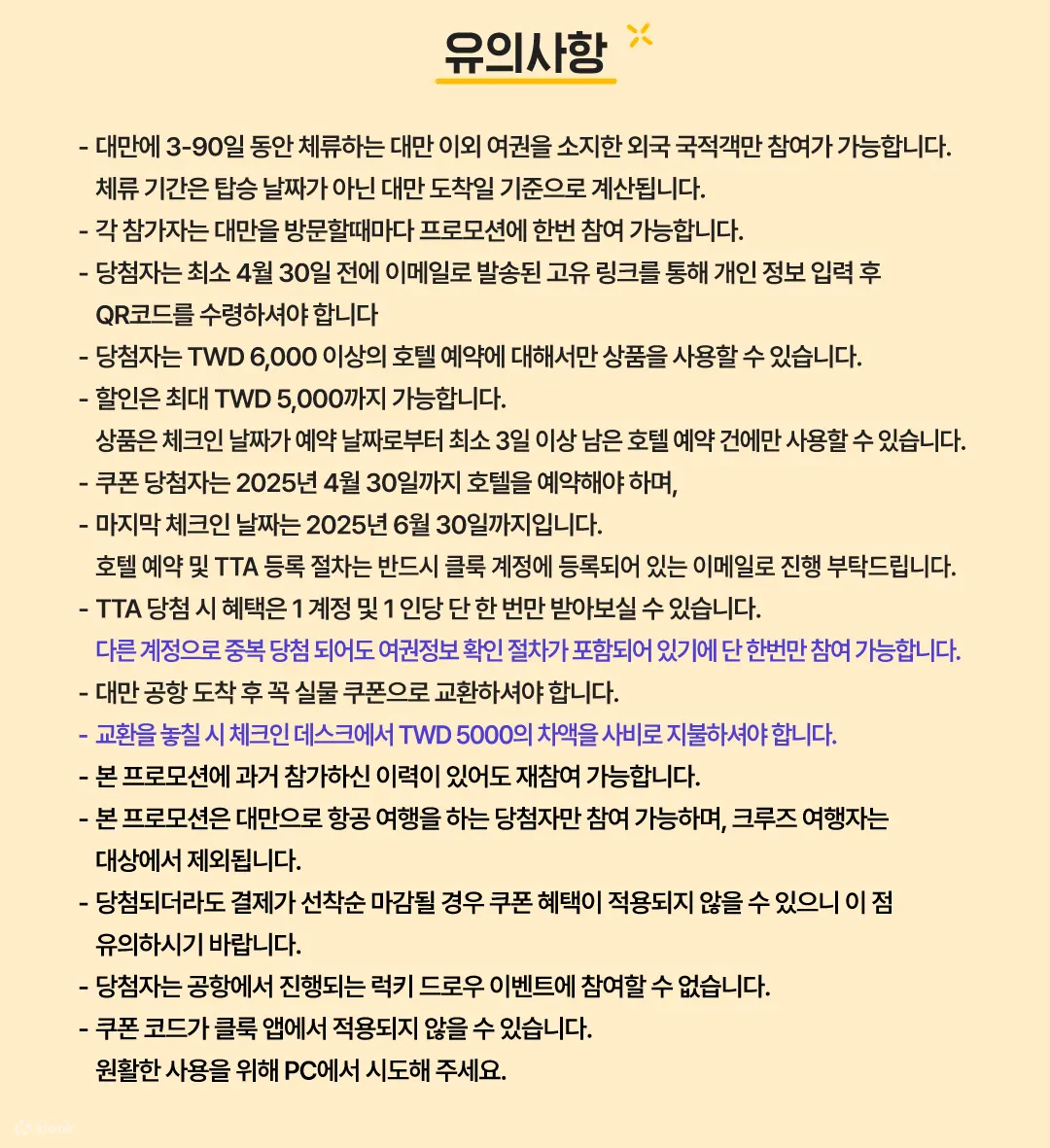 대만여행 하실 분은 꼭 해보세요! 뽑기보다 호텔숙박이 훨씬 이득인 것 같습니다 ^^