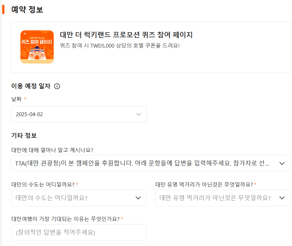 그렇게 링크를 타고 들어가서 호텔을 예약하면, 이메일로 호텔예약확정서와 함께 TWD5,000 호텔쿠폰 사용을 위한 마지막 단계라는 메일이 함께 옵니다. 아래 링크를 통해 개인정보 (이름, 여권번호 등)를 입력하면 바로 대만관광청의 메일로 아래와같은 QR코드를 받게 됩니다.