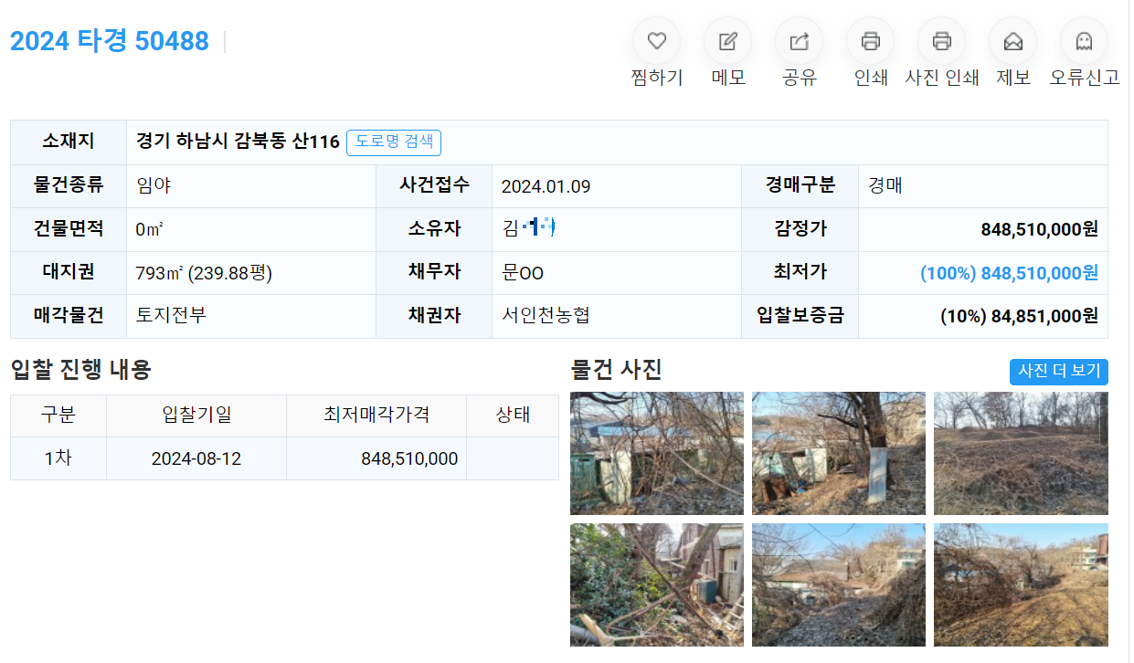 호옥시나 해서 관련 지역에 경매로 나온 땅 있나 하고 보니... 하남에 두군데 있네요...