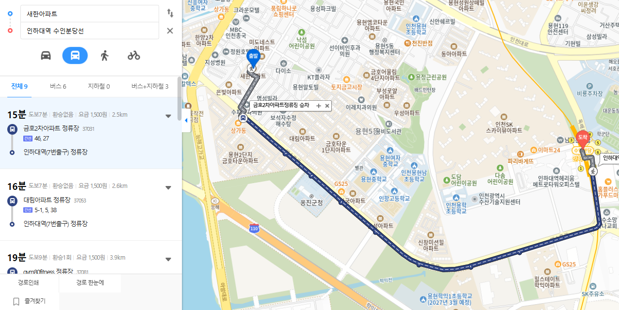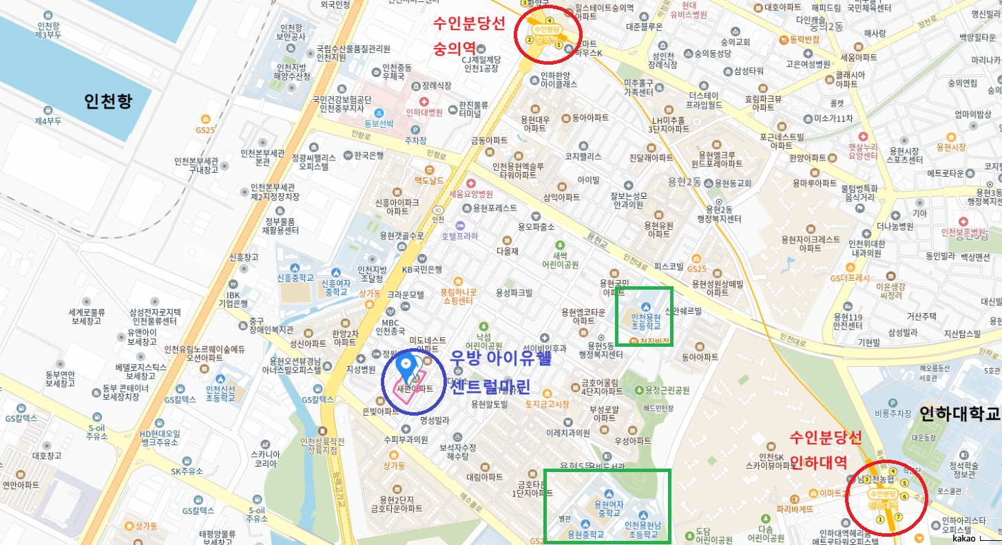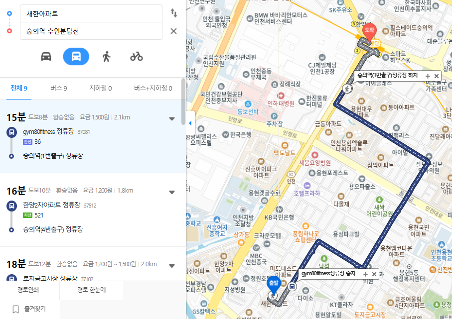 수인분당선 숭의역이나 인하대역으로 가려면 버스로 15분가량, 도보로 25-30분 소요됩니다.