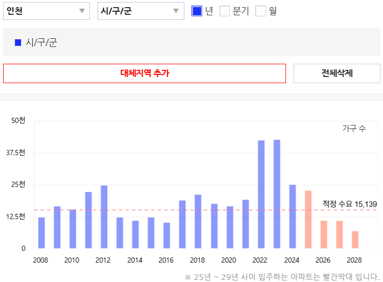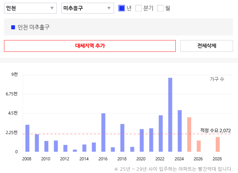 이 아파트의 입주시기인 2027년에는 인천 전체적으로도 미추홀구에도 입주량은 매우 부족합니다.