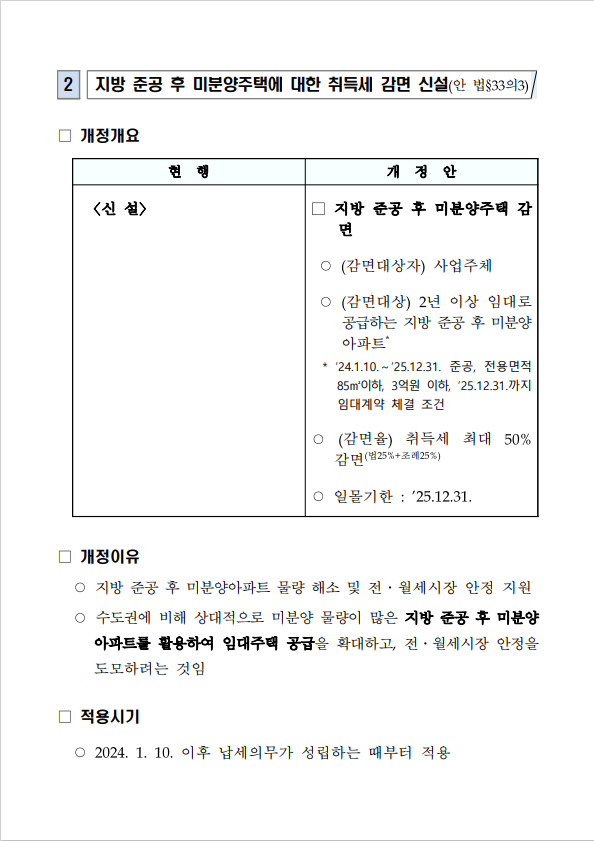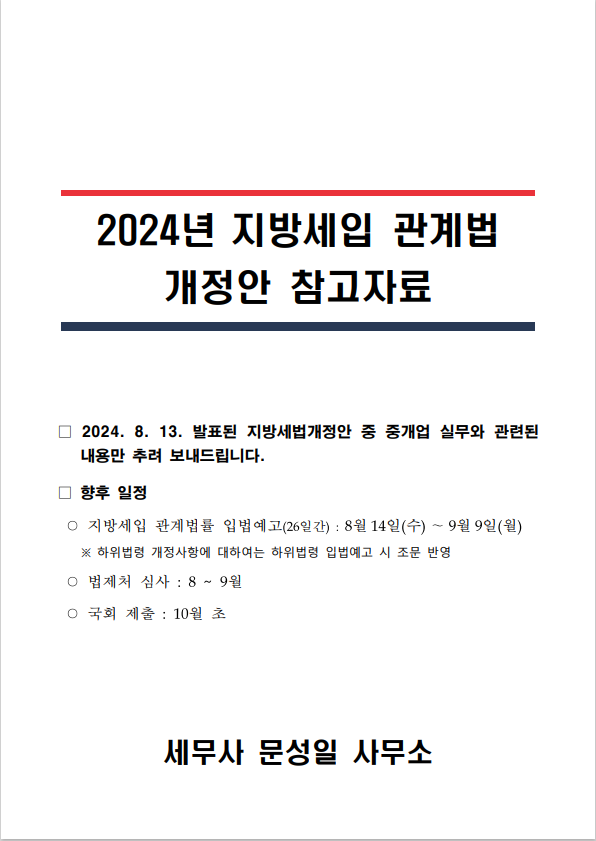 개정된 2024년 지방세입 관계법 개정안 용입니다.