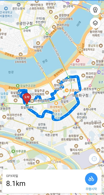 아실과 호갱노노를 참조한 아파트 순위입니다.송파는 그냥 엘리트파와 석촌호수앞 그리고 잠5가 끝이네요 ^^;; 59타입 84타입 카카오맵 있으면 위 루트대로 그려지는 gpx