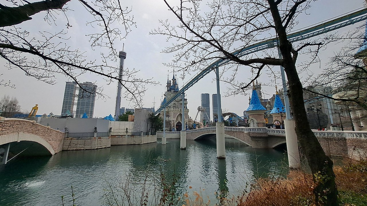 한 일주일 쯤 뒤에 왔으면 벚꽃이 정말 이뻤을 것같은 석촌호수를 지나, 롯데월드도 지나