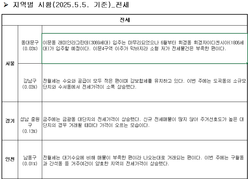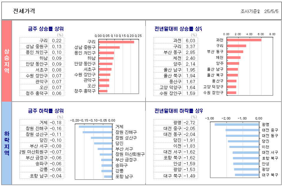 2025년 5월 1주 주간아파트 통계자료 (by KB부동산)