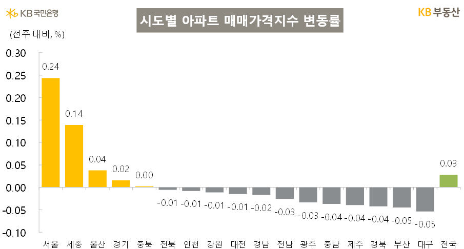 인천을 제외한 5개 광역시(-0.03%) 아파트 가격은 하락했지만 울산(0.04%)만 14주 연속 상승했습니다.