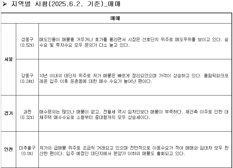 세종(0.14%)은 8주째 상승세입니다(4월 14일 0.03%→4월 21일 0.23%→4월 28일 0.50%→5월 5일 0.22%→5월 12일 0.45%→5월 19일 0.37%→5월 26일 0.16%→6월 2일 0.14%). 상승폭은 4주 연속 둔화했다. 최근 가격 상승이 가팔랐던 데다 대통령 선거가 겹치면서 관망세가 이어지는 분위기다. 하지만 어제 오늘 뉴스를 보면 거래가 뚝 끊겼다는 소식도 나오고 있으니 지켜봐야 할 것 같습니다.