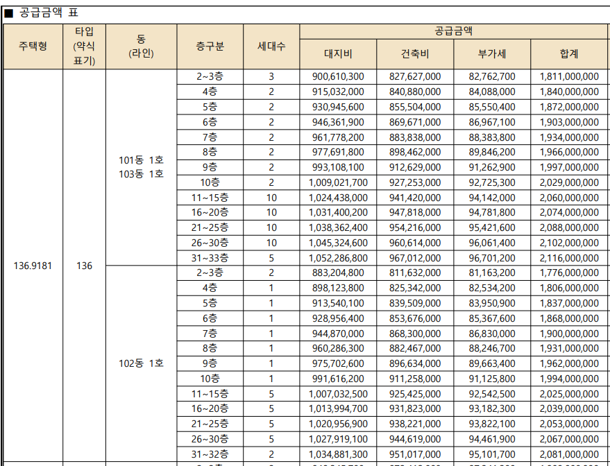 공급금액 역시 평수도 넓고 고급화를 추구하다보니 ... 쎄네요