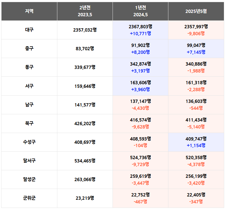 신축단지가 들어오고 학군이 유명한 수성구와 중구가