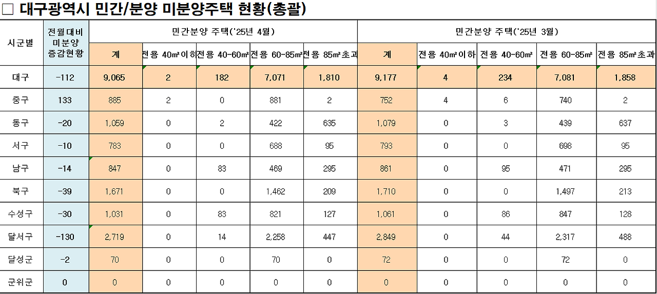 특히 부산과 대구는 공급과잉으로 미분양이 해소되지 않는