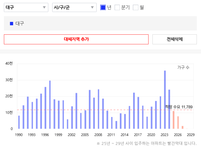 대구는 지난 5년간 공급량 역시 너무 많아서