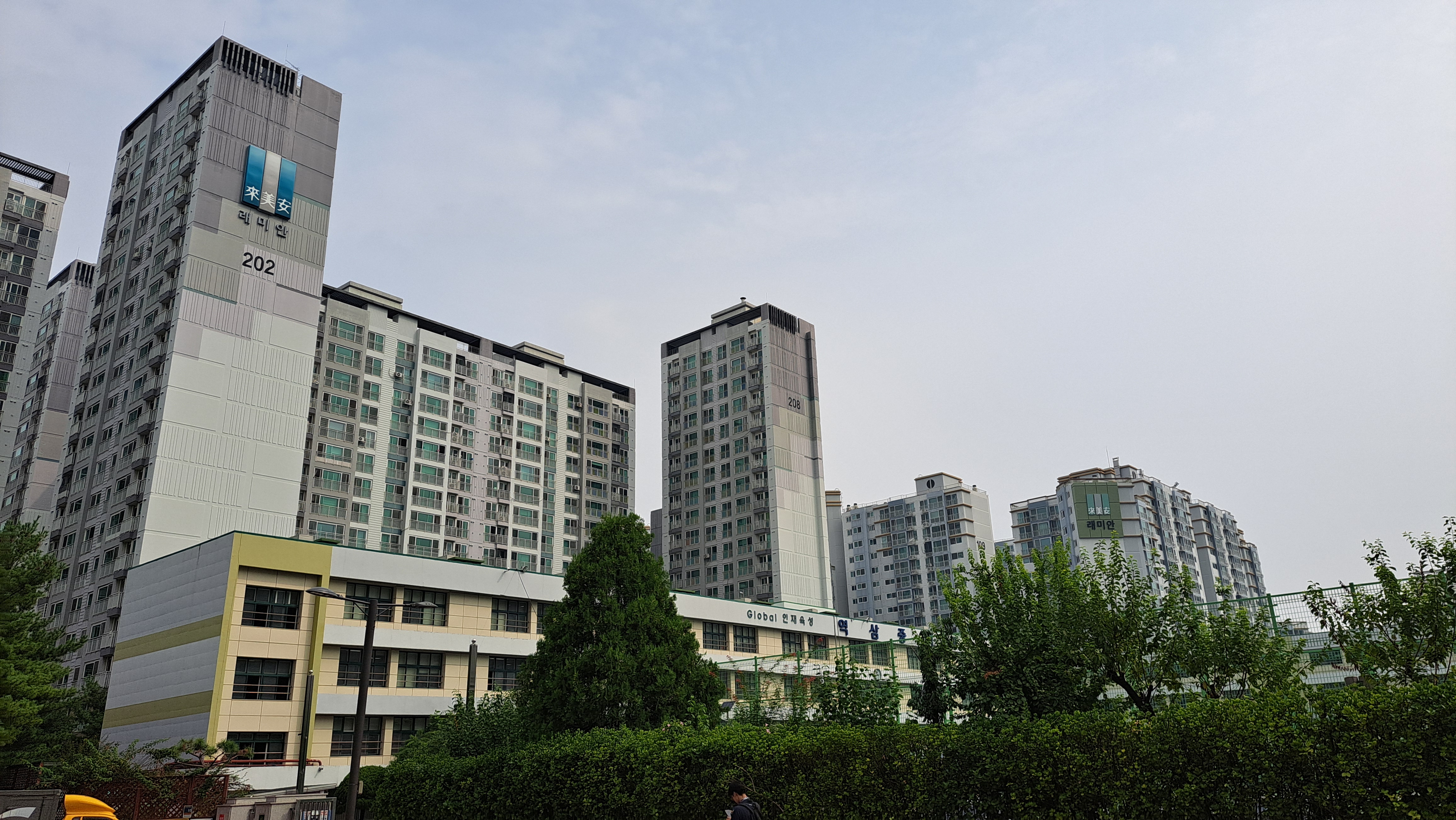 웅장한 숙명여고, 그리고 뒤에 도곡렉슬 사이의 흰 건물은 중대부고