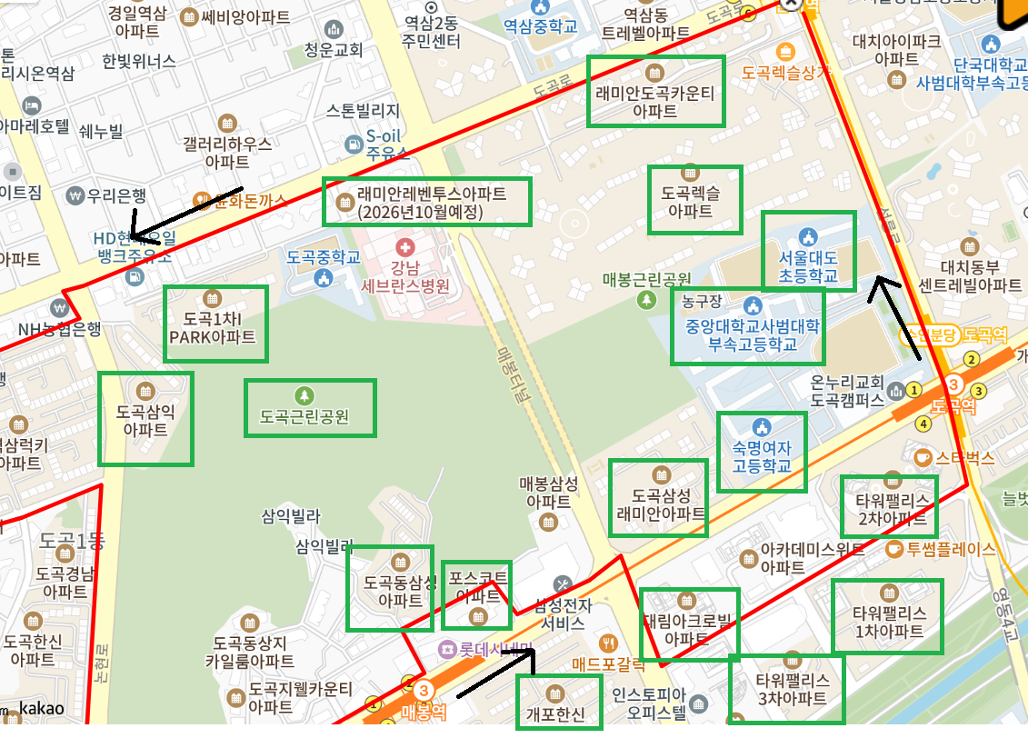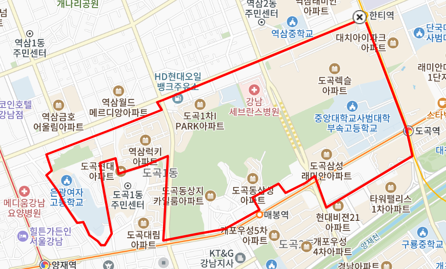 다시 한티역쪽으로오니 보이는 도곡렉슬을 지나