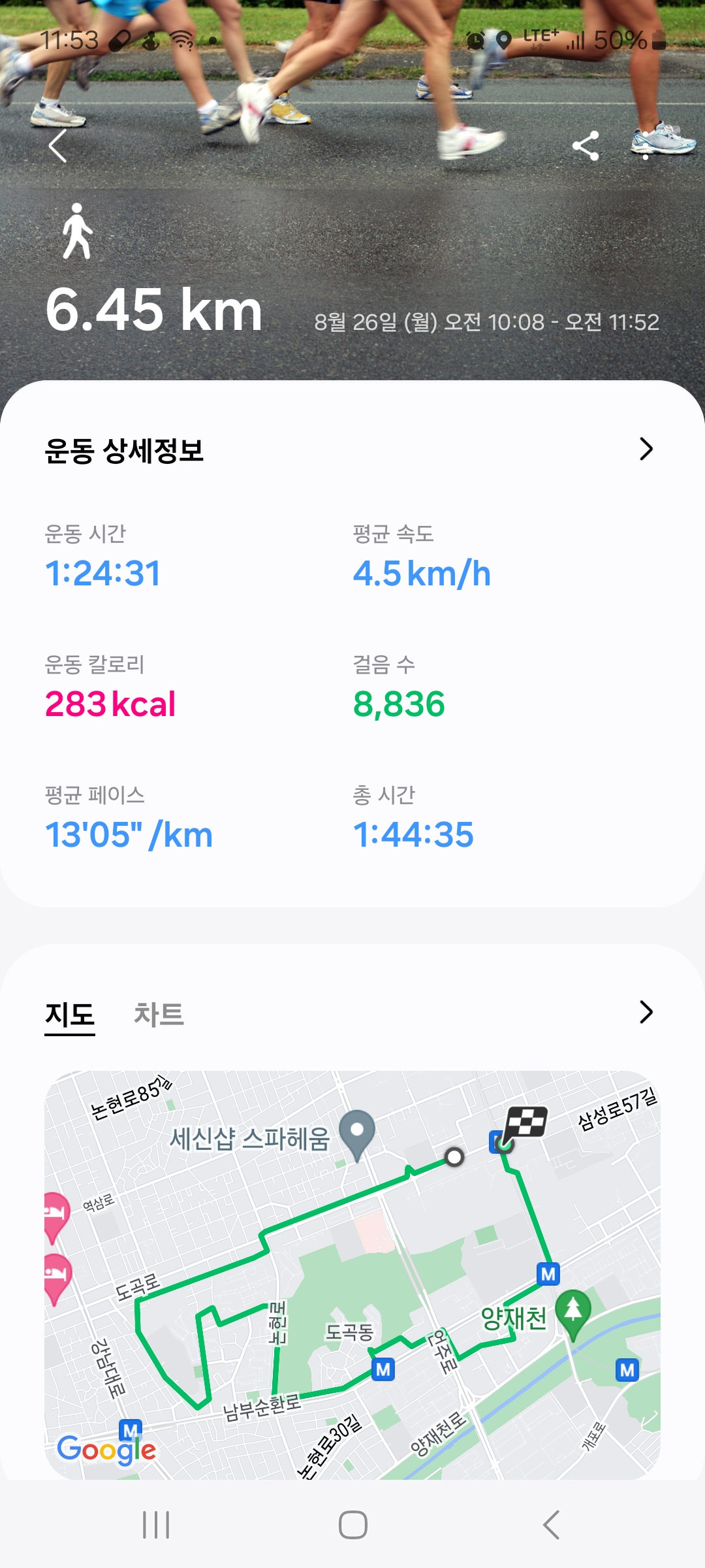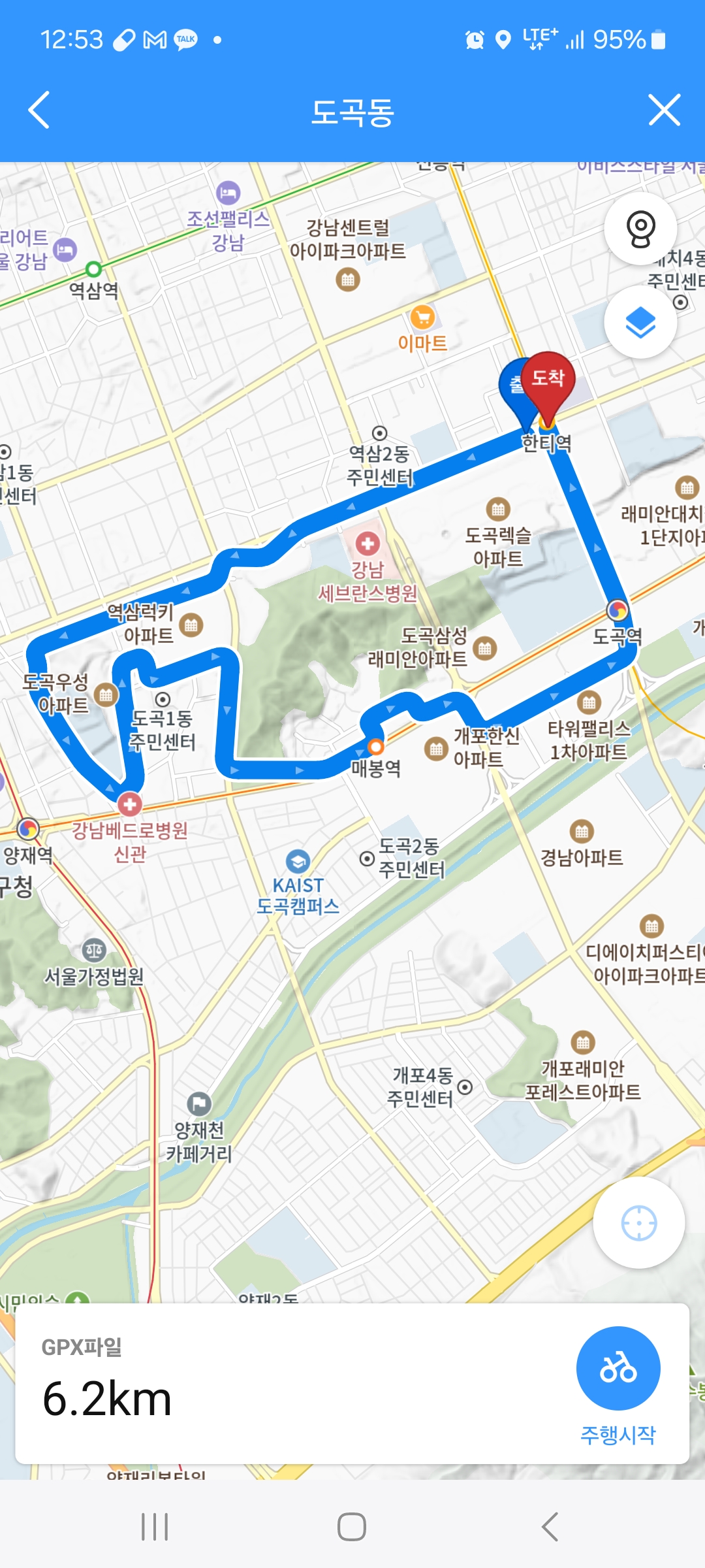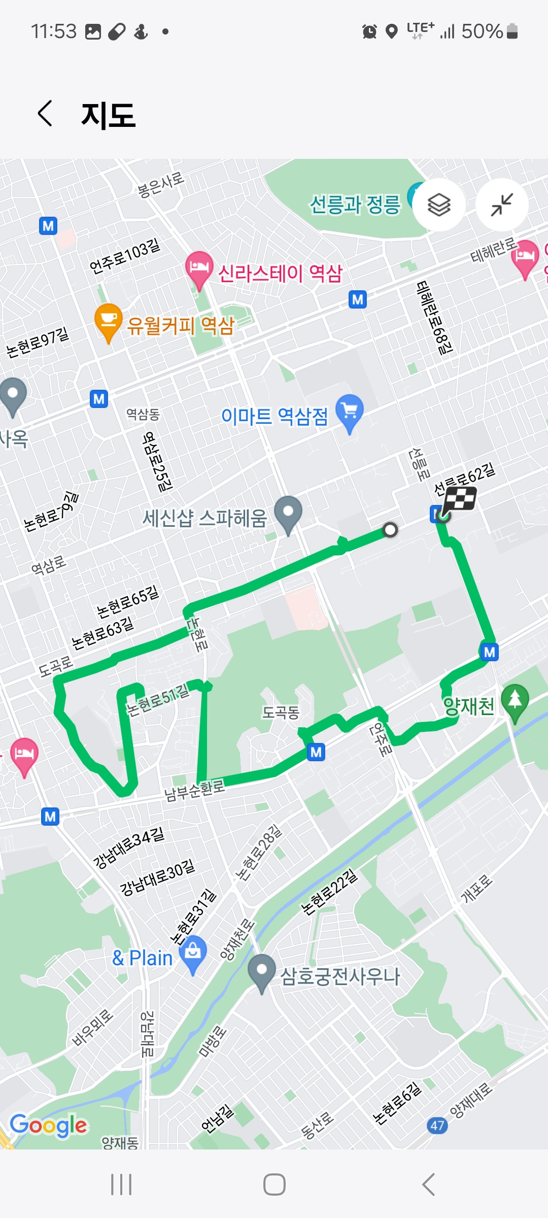 오늘 계획한 루트와 실제 돌아다닌 기록입니다.