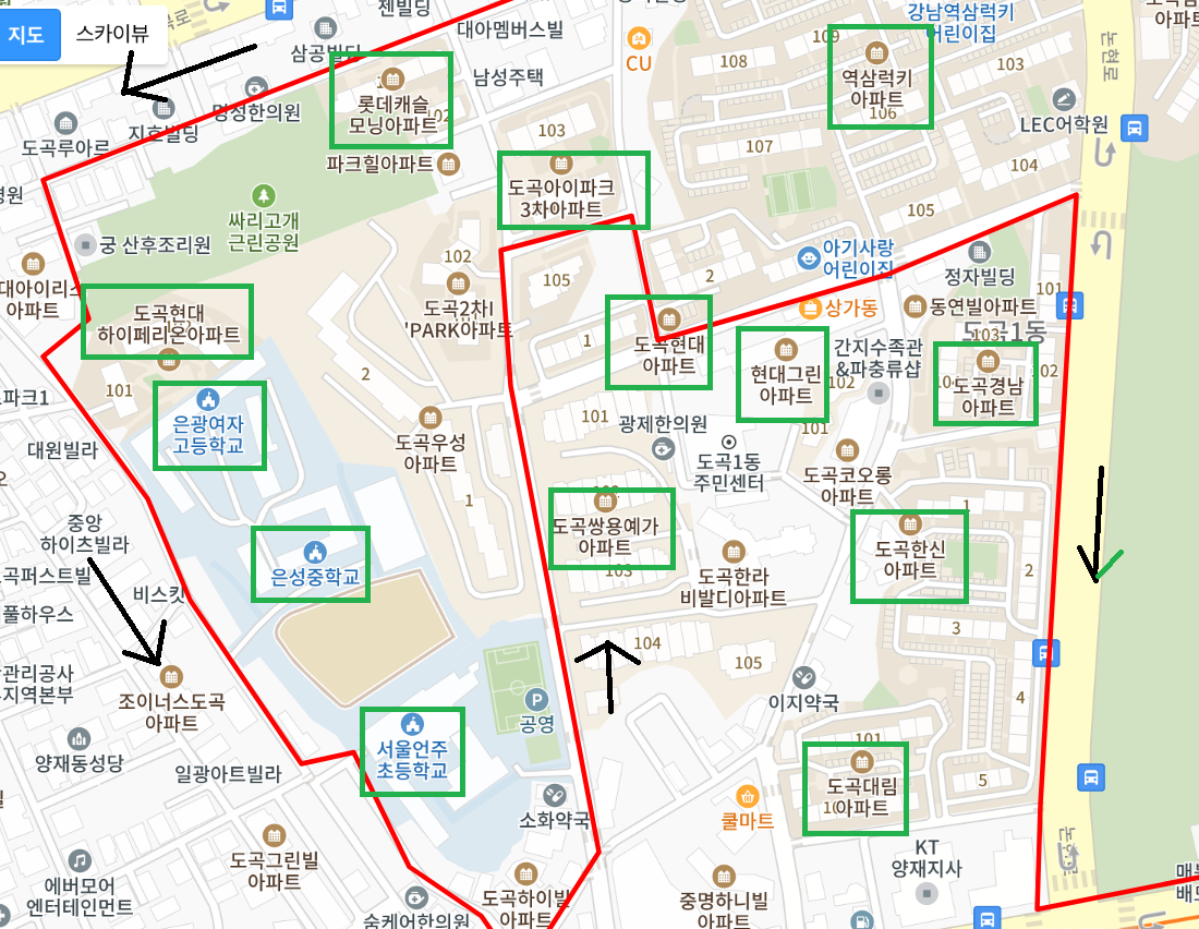 도곡현대 맞은편 도곡현대그린. 한동 아파트인 것 같다