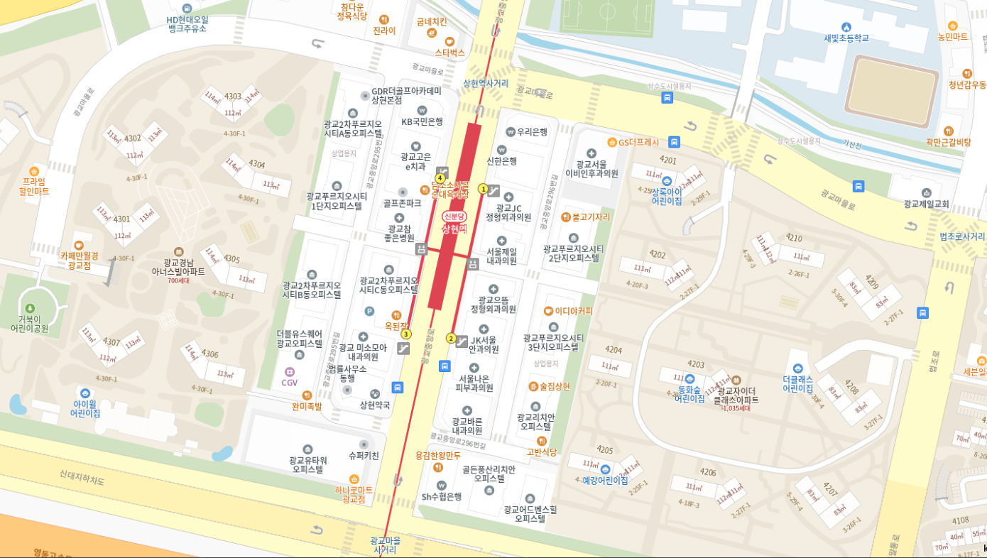 그리고 수지센트럴 아이파크 앞은 이렇게 상점가가 마주하고 있습니다.