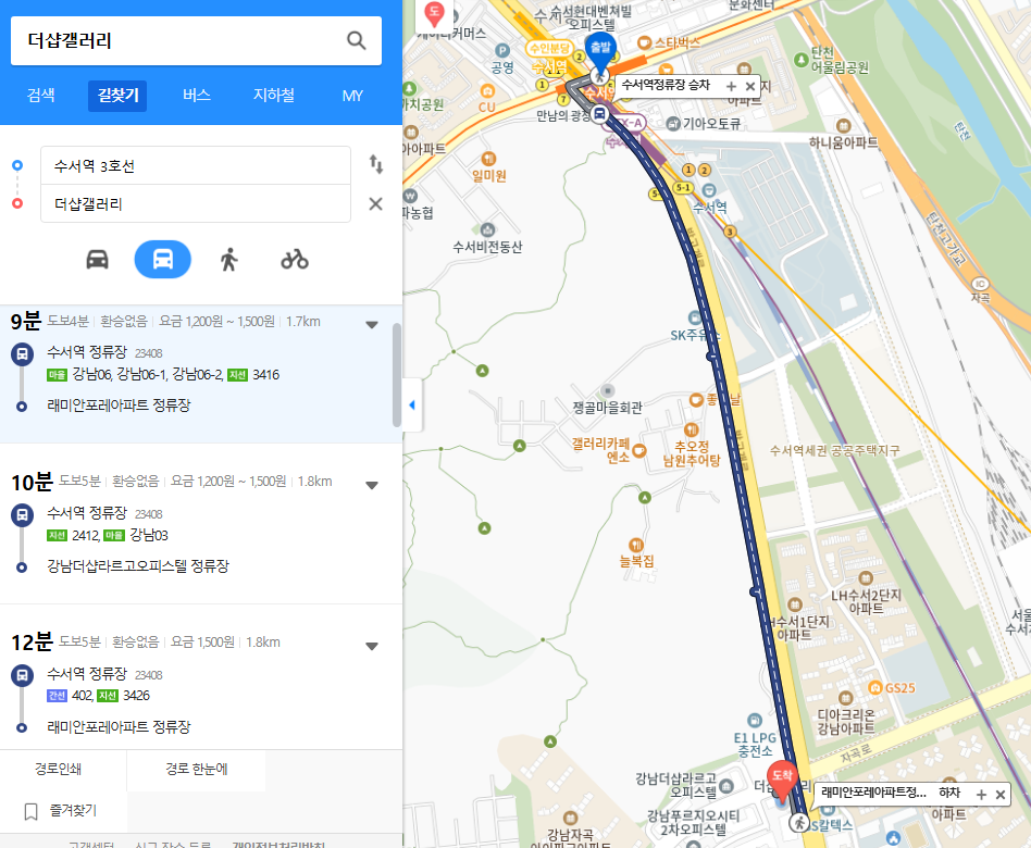 더샵갤러리는 수서역 6번출구에서 나와 있는 버스 정류장에서