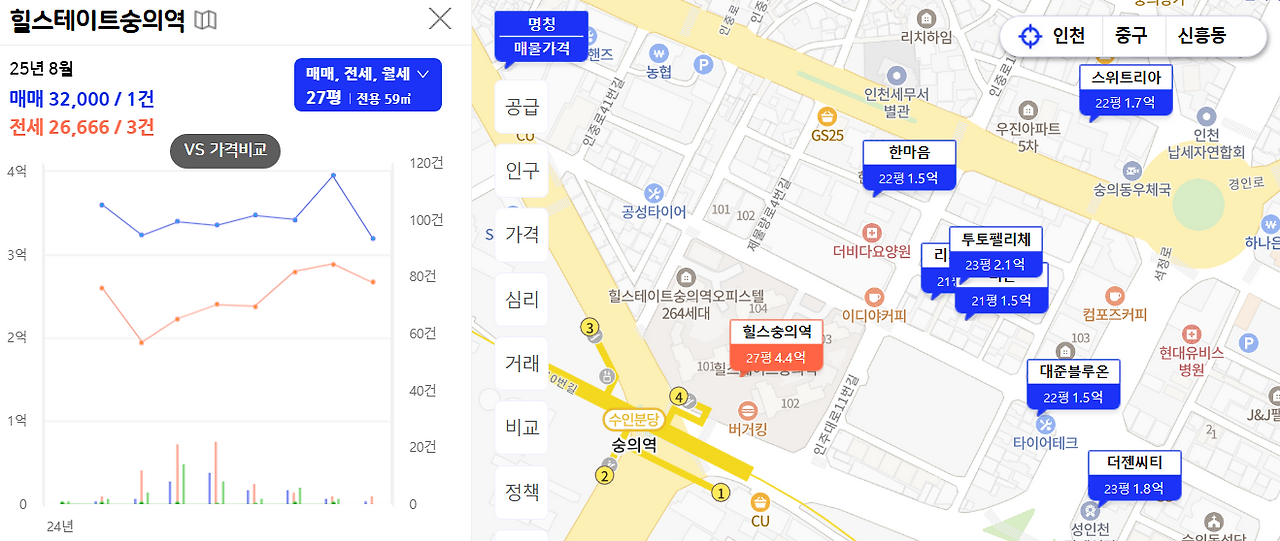 힐스테이트 숭의역이 거래사례가 있어서 봤는데