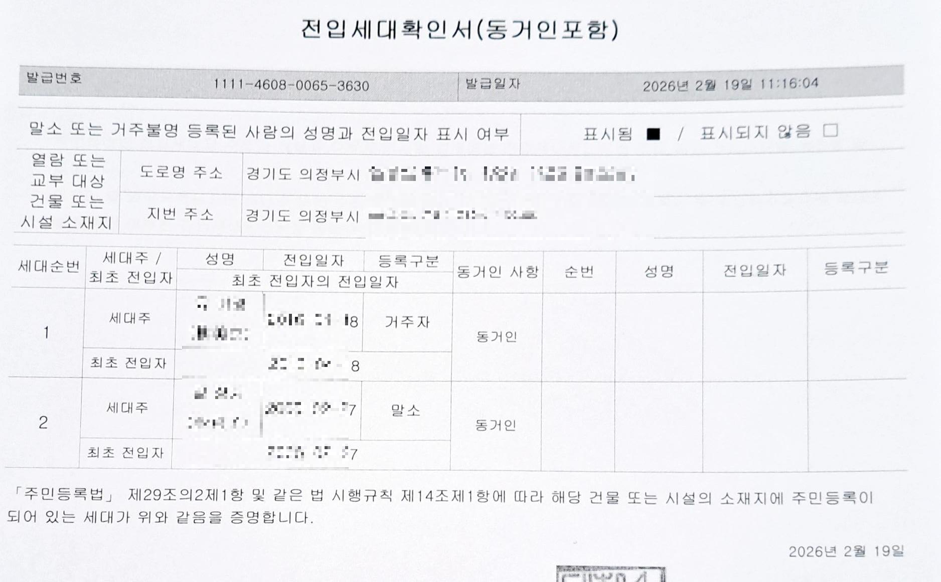 (물론 전입세대 확인을 해봐도 실제와 또 다른 경우가 있을 수 있으니 직접 가서 확인해 보는 것이 가장 좋겠지만요)