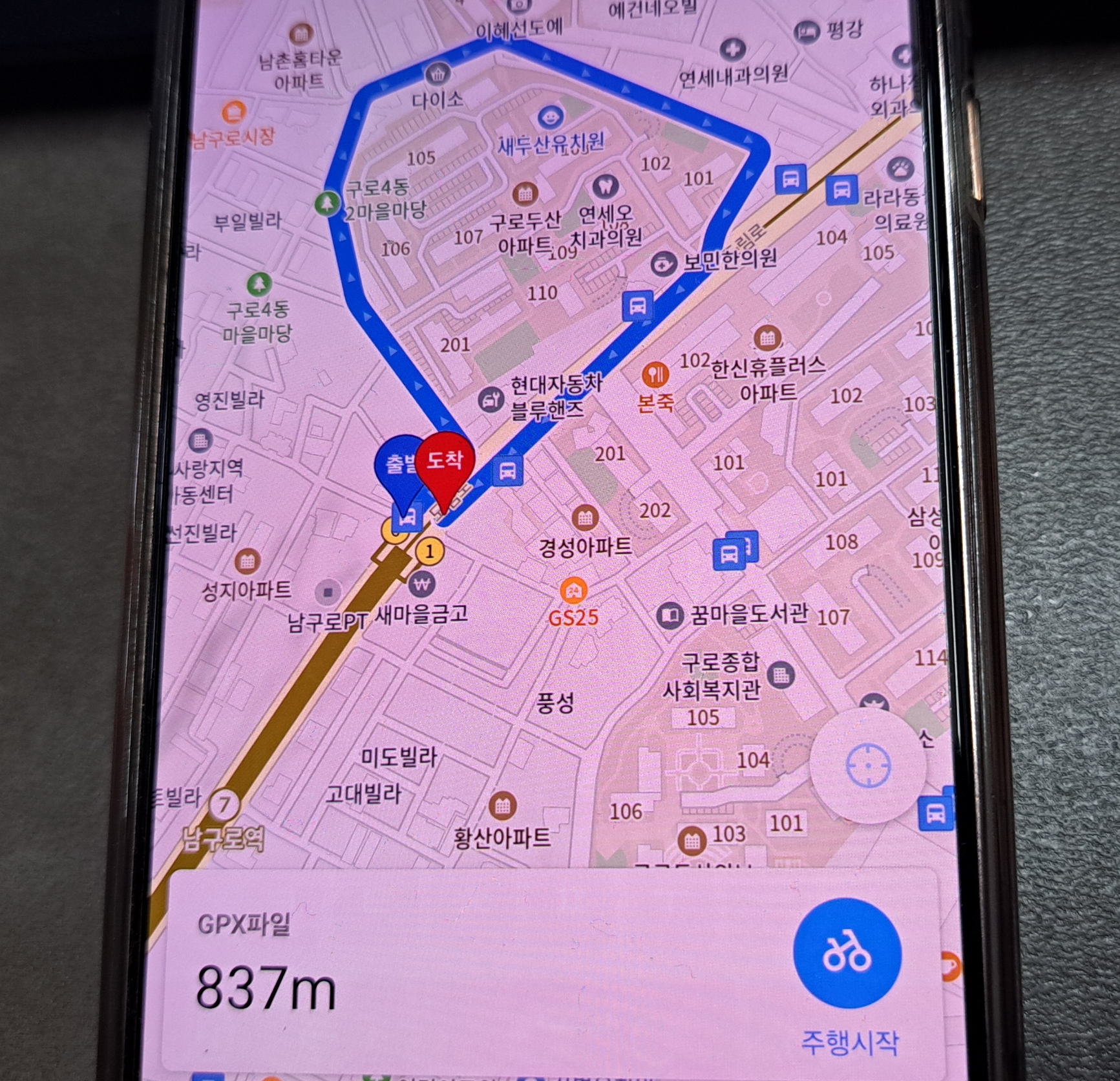 임장 시작하는 곳에서 시작을 하면 코스가 표시됩니다.