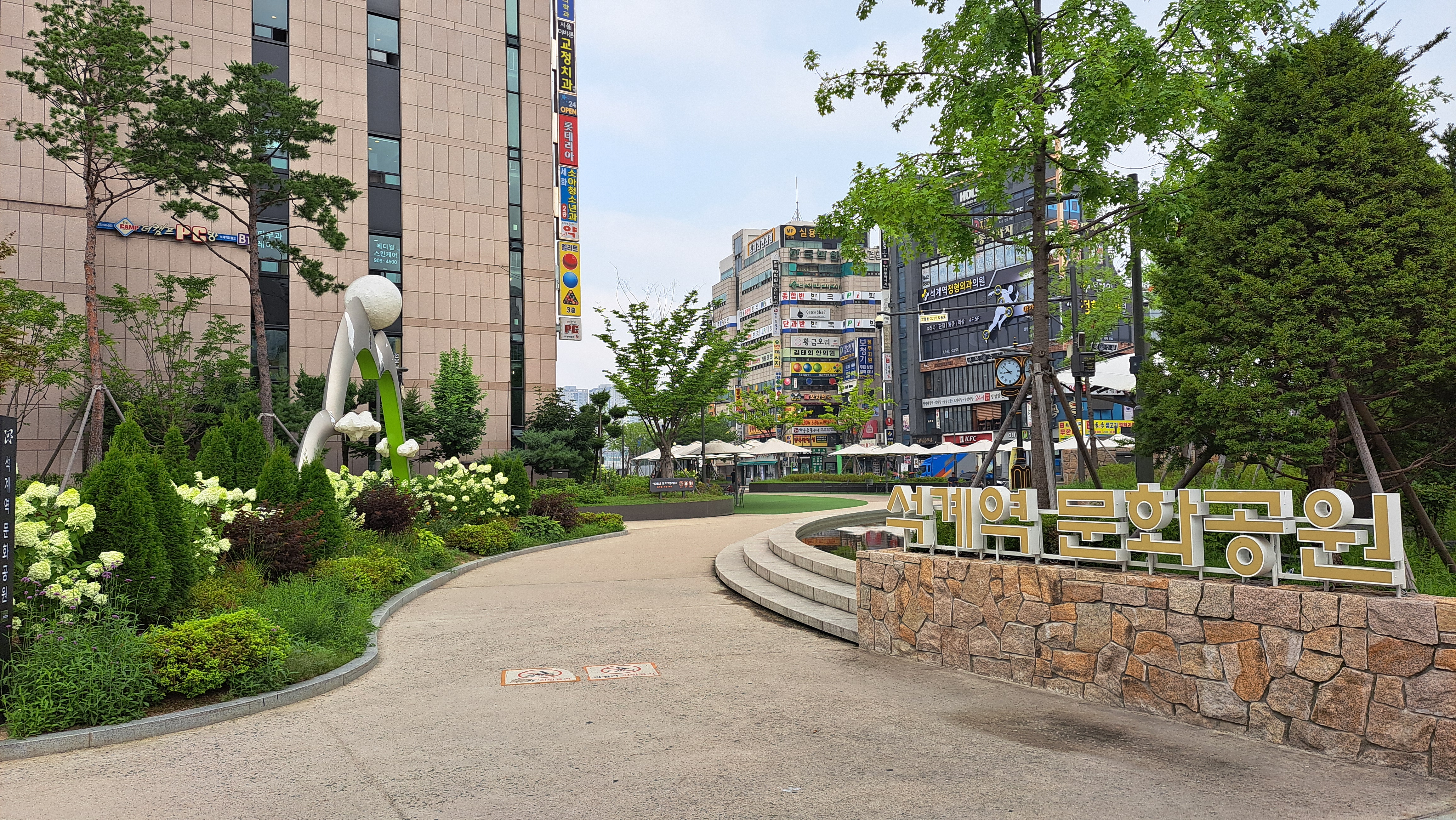 1번출구를 바로 나오면 있는 공원이 꽤 널찍하다.