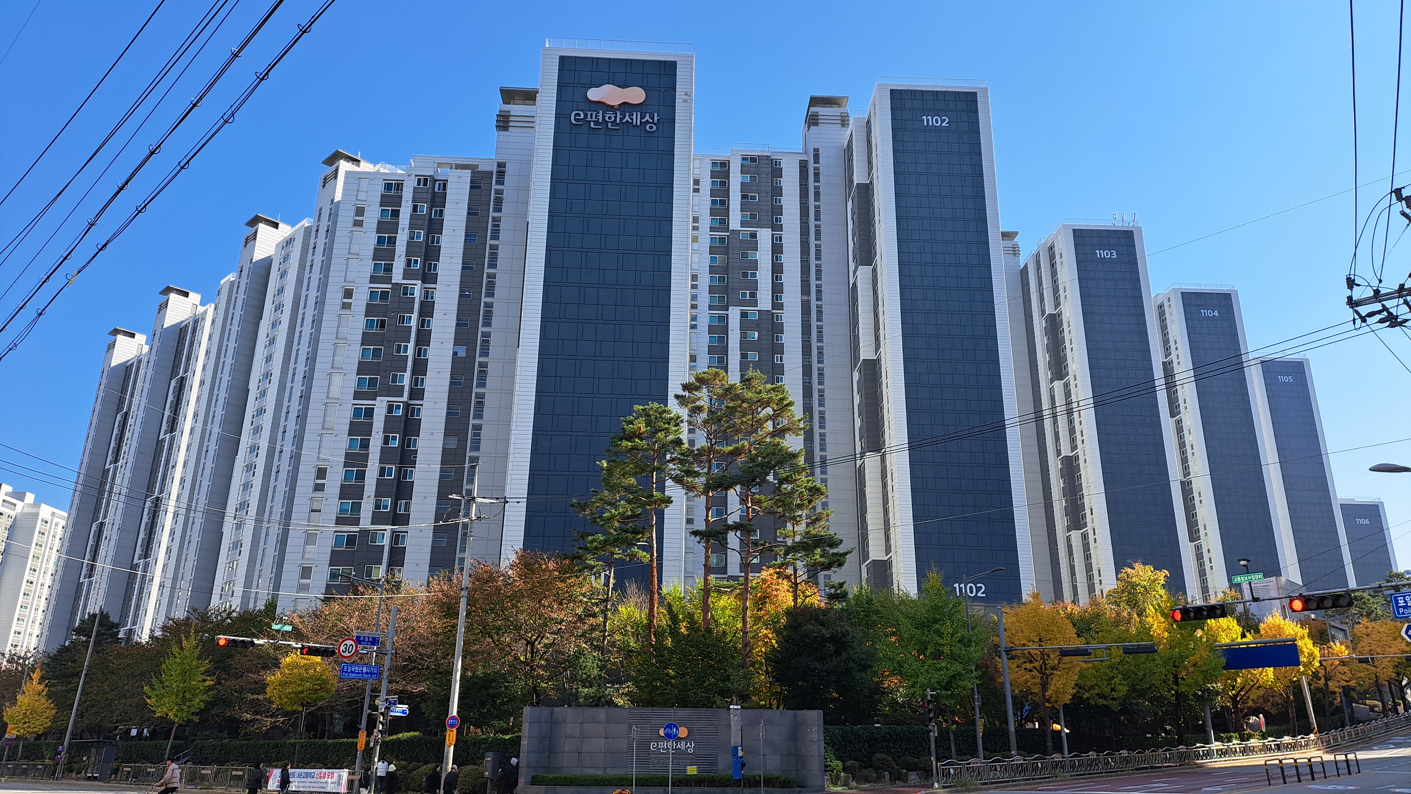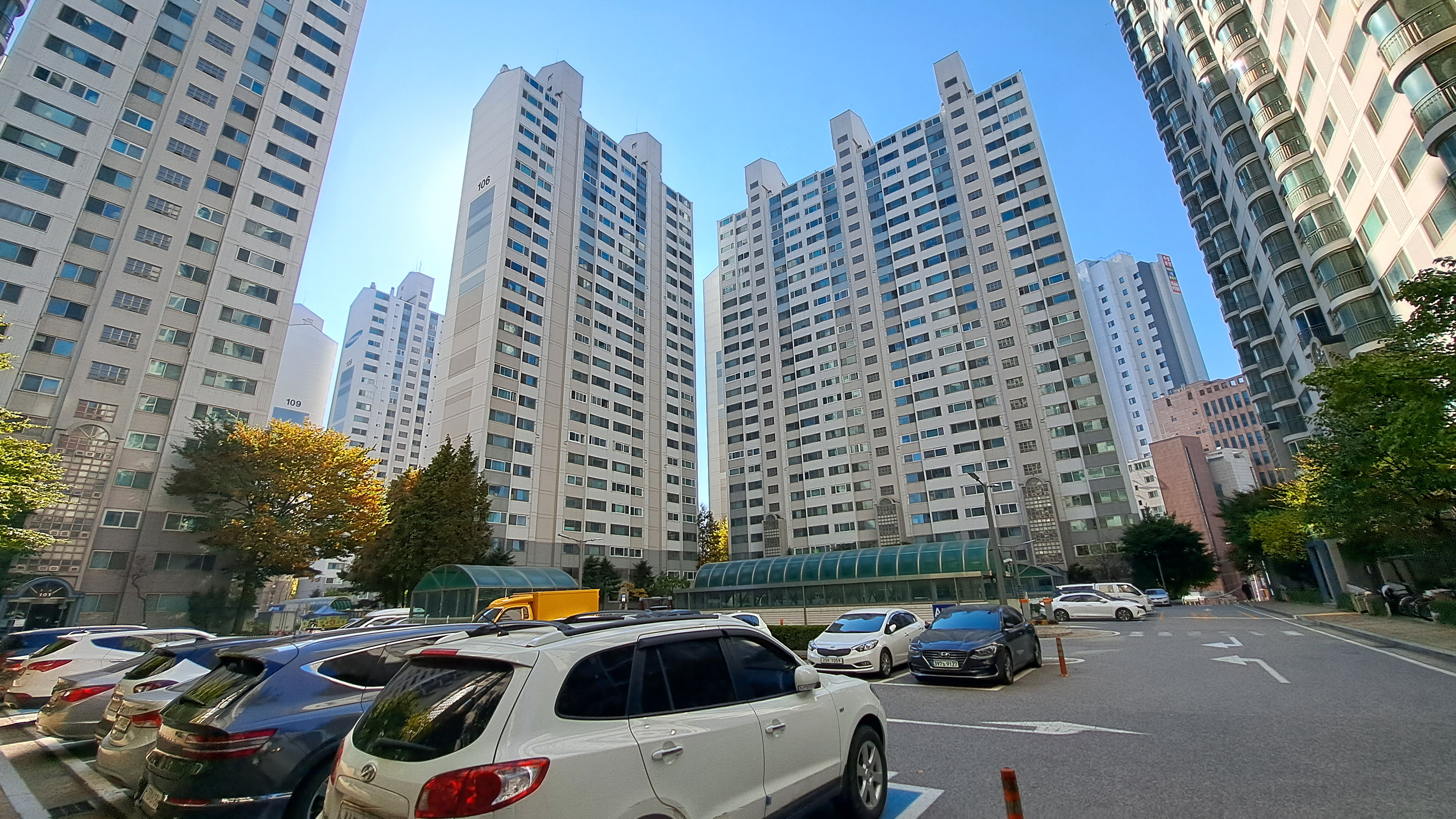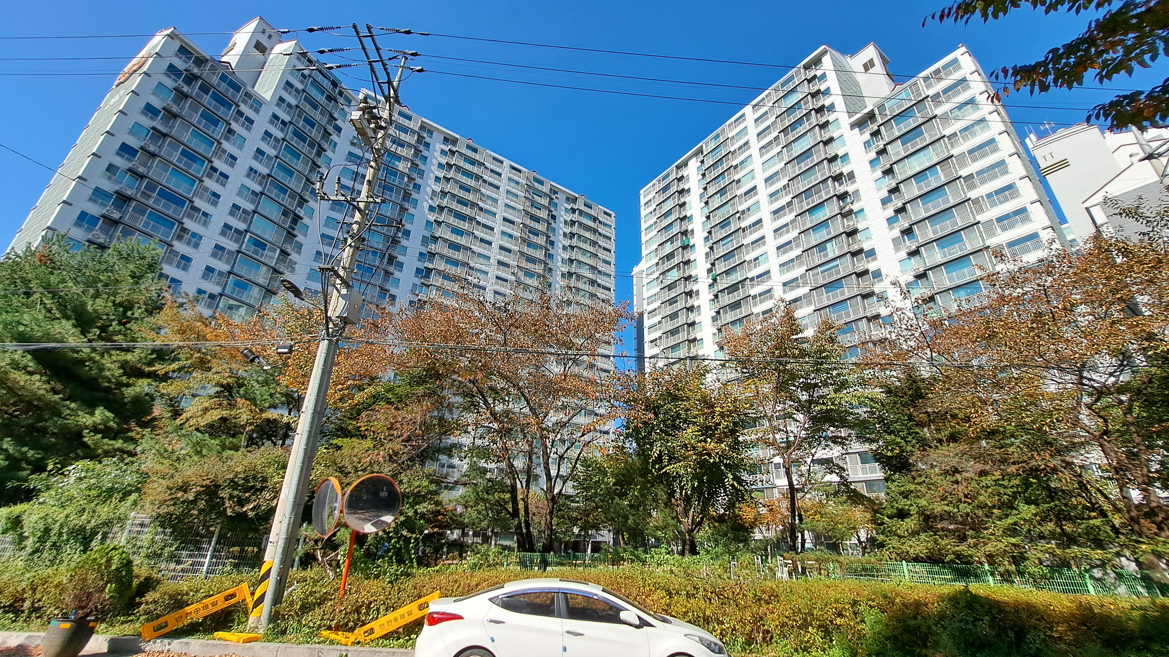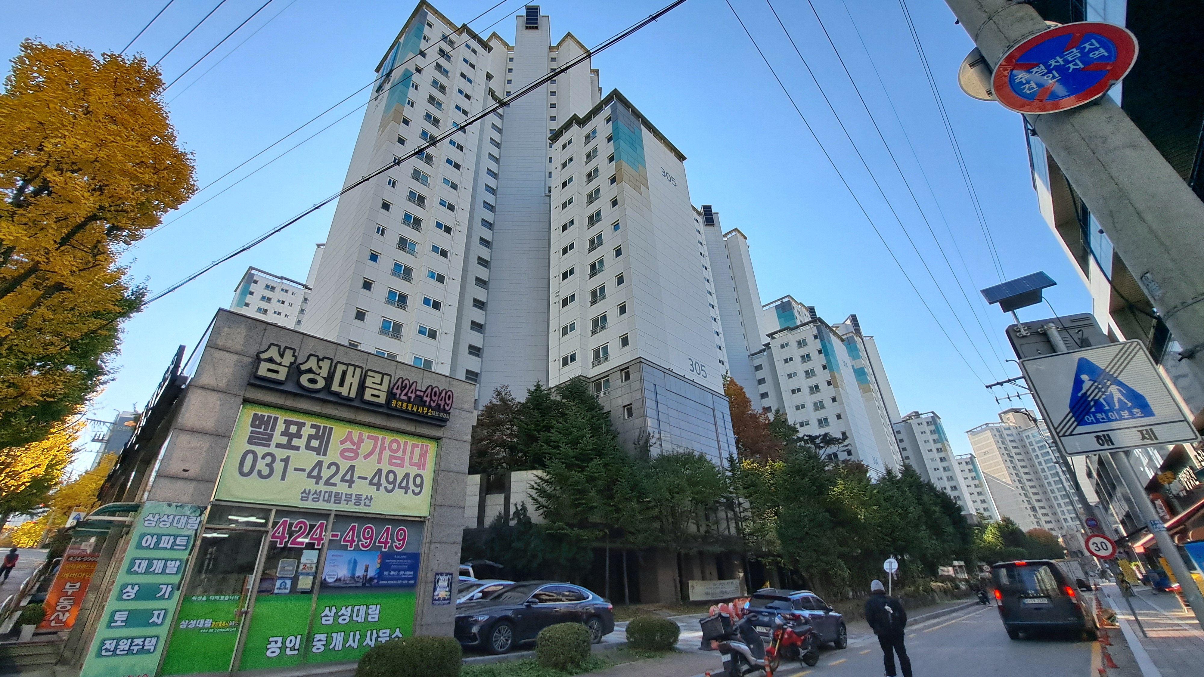 주차장 바로 길 건너편에 인덕원 삼성아파트