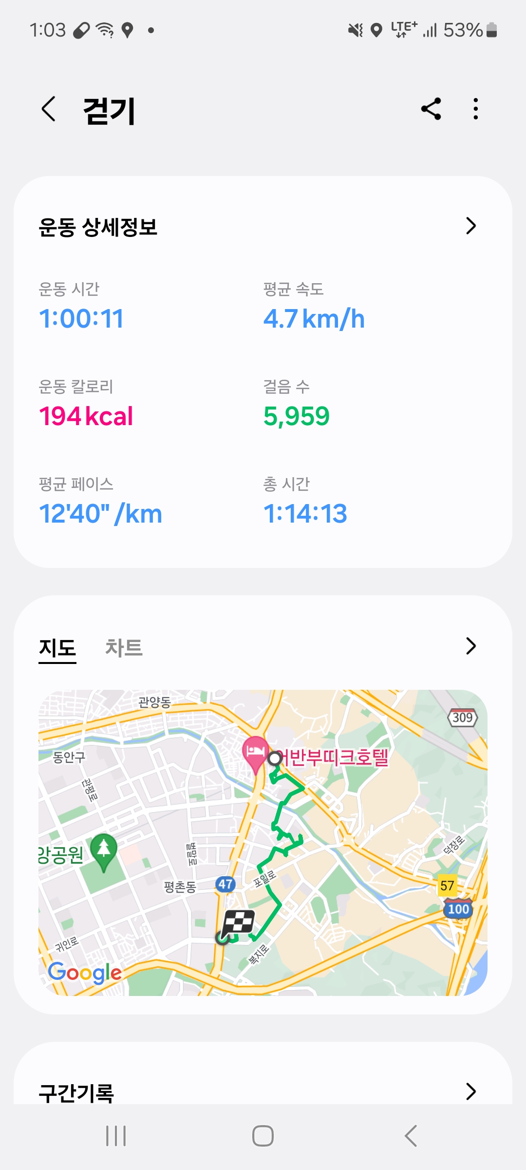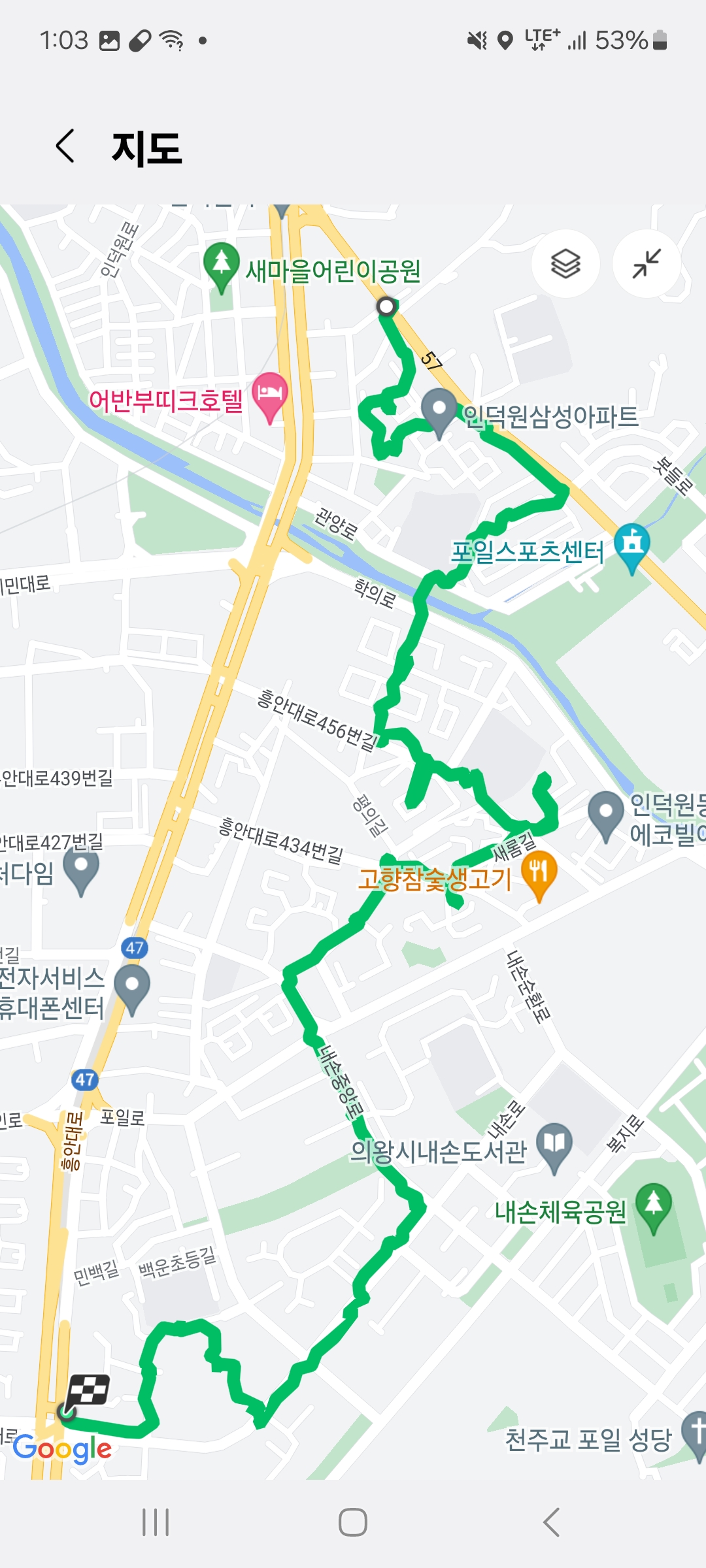계획한 코스 / 실제 걸은 코스 / 코스 정보 (인덕원)