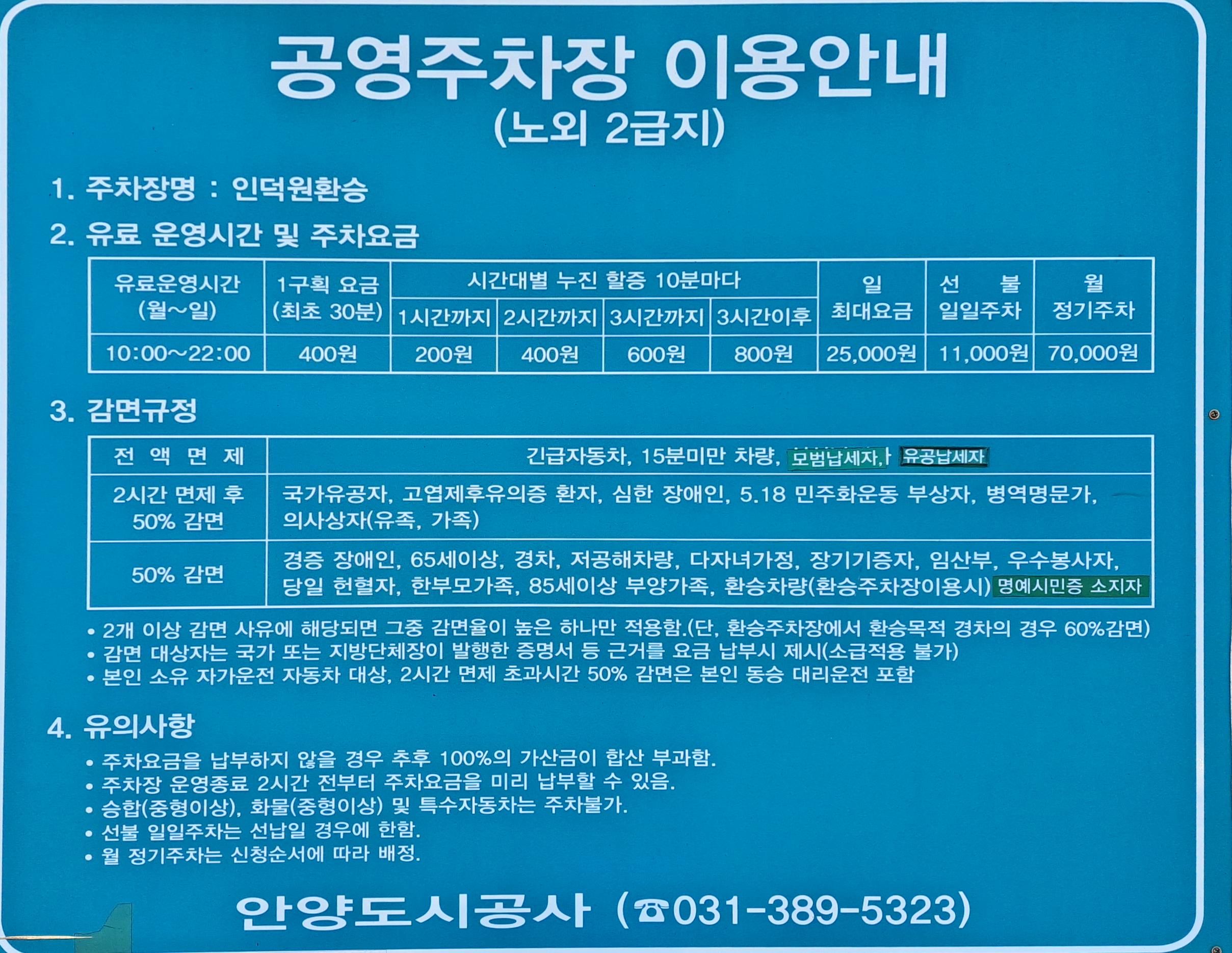 인덕원 역 근처 공영주차장에 주차를 했구요