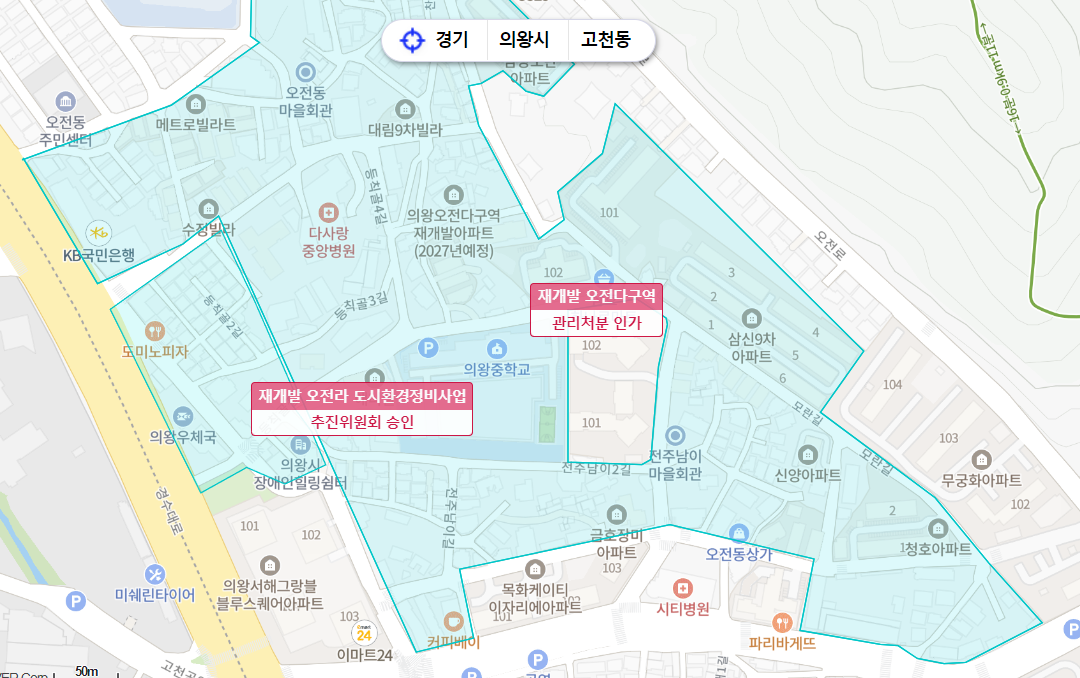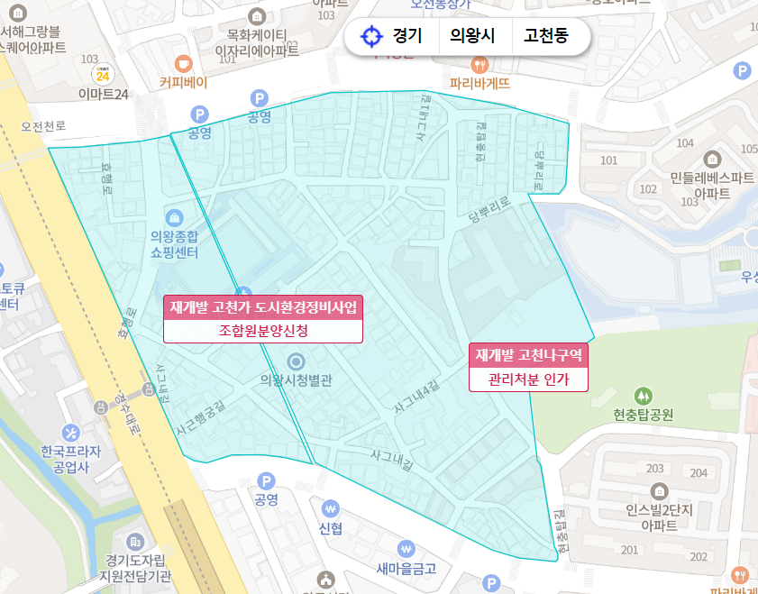 고천동 오전동쪽은 지금 재개발이 시작되는 구역들이 많기도하고
