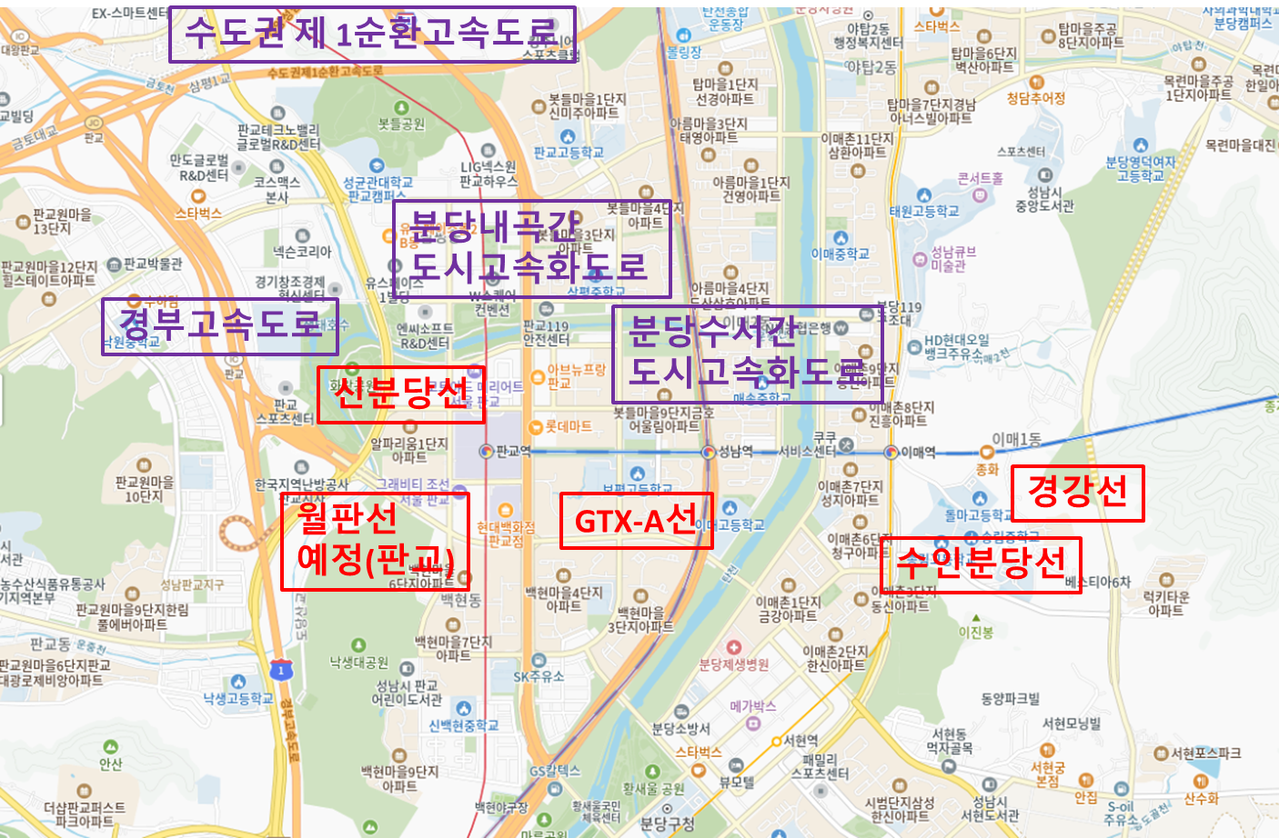 지금은 당연히.. 다 들어왔고 요즘 판교 2, 3 테크노밸리 이야기가 있죠