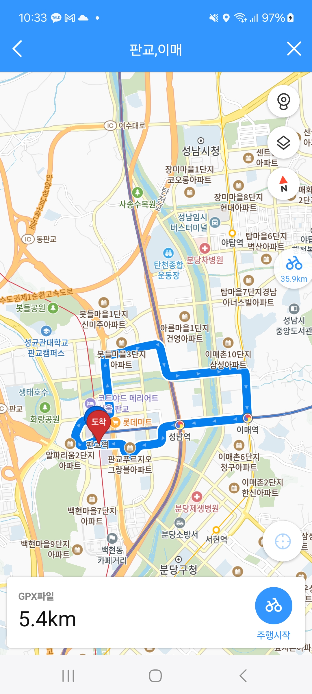 뭔가 최첨단느낌의 동판교와 올해 꾸며진 굿모닝 파크를 넘어 이매까지 다녀왔습니다.
