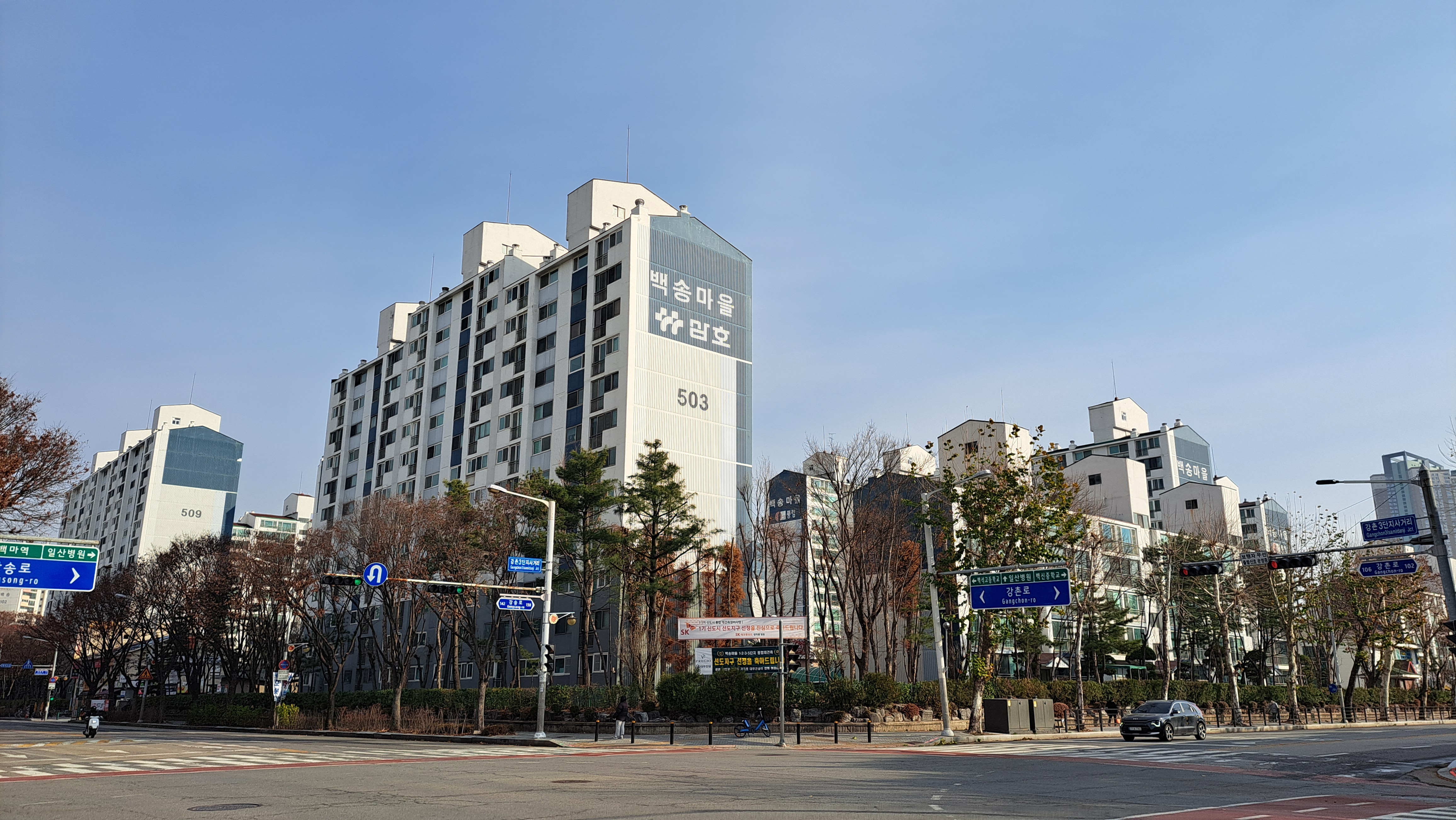 백마마을은 대로에서 멀찍이 상가너머로 찍기만 했어요