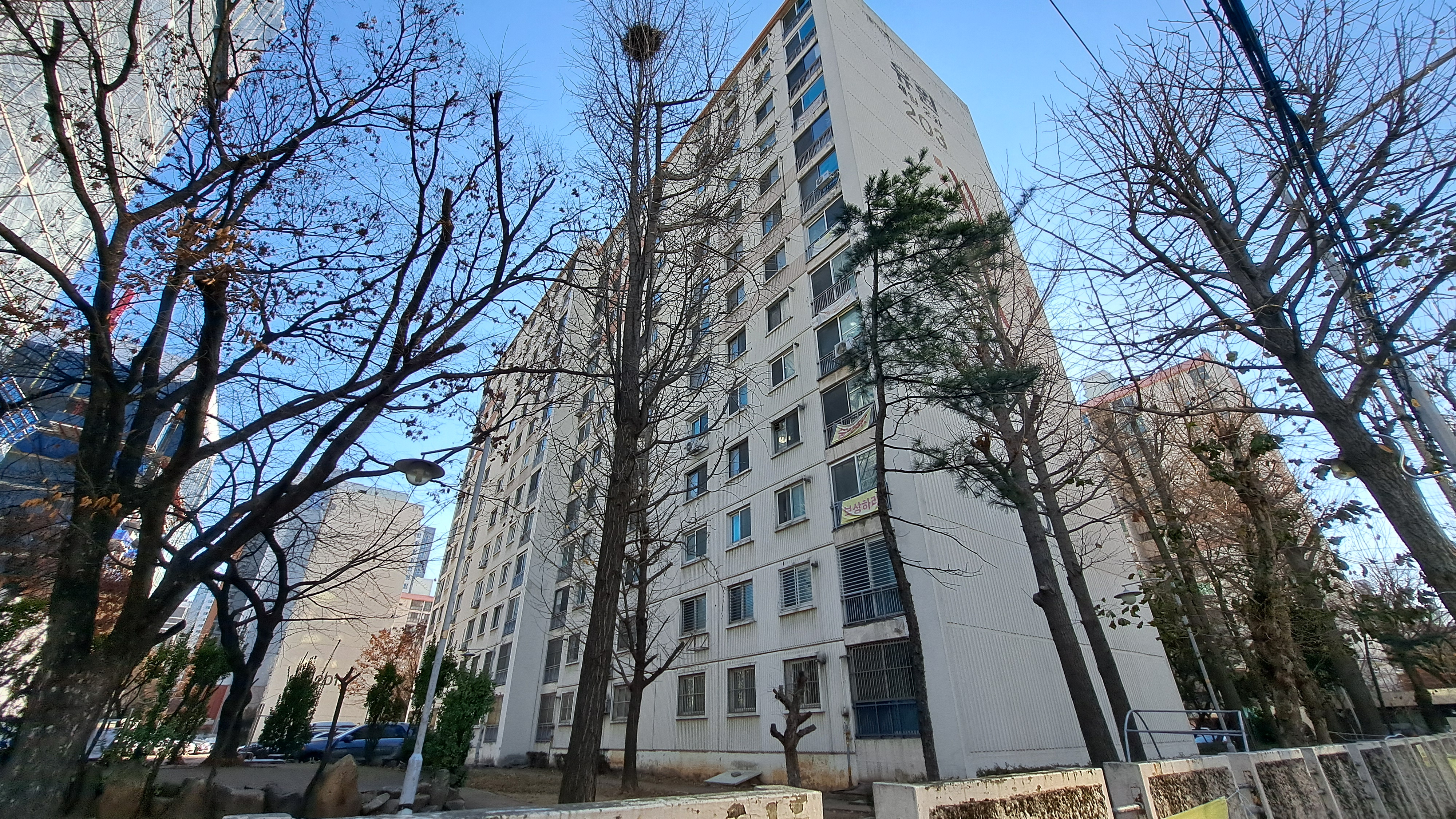 정작 이 아파트에 안전진단 통과 축하 플랭카드가..