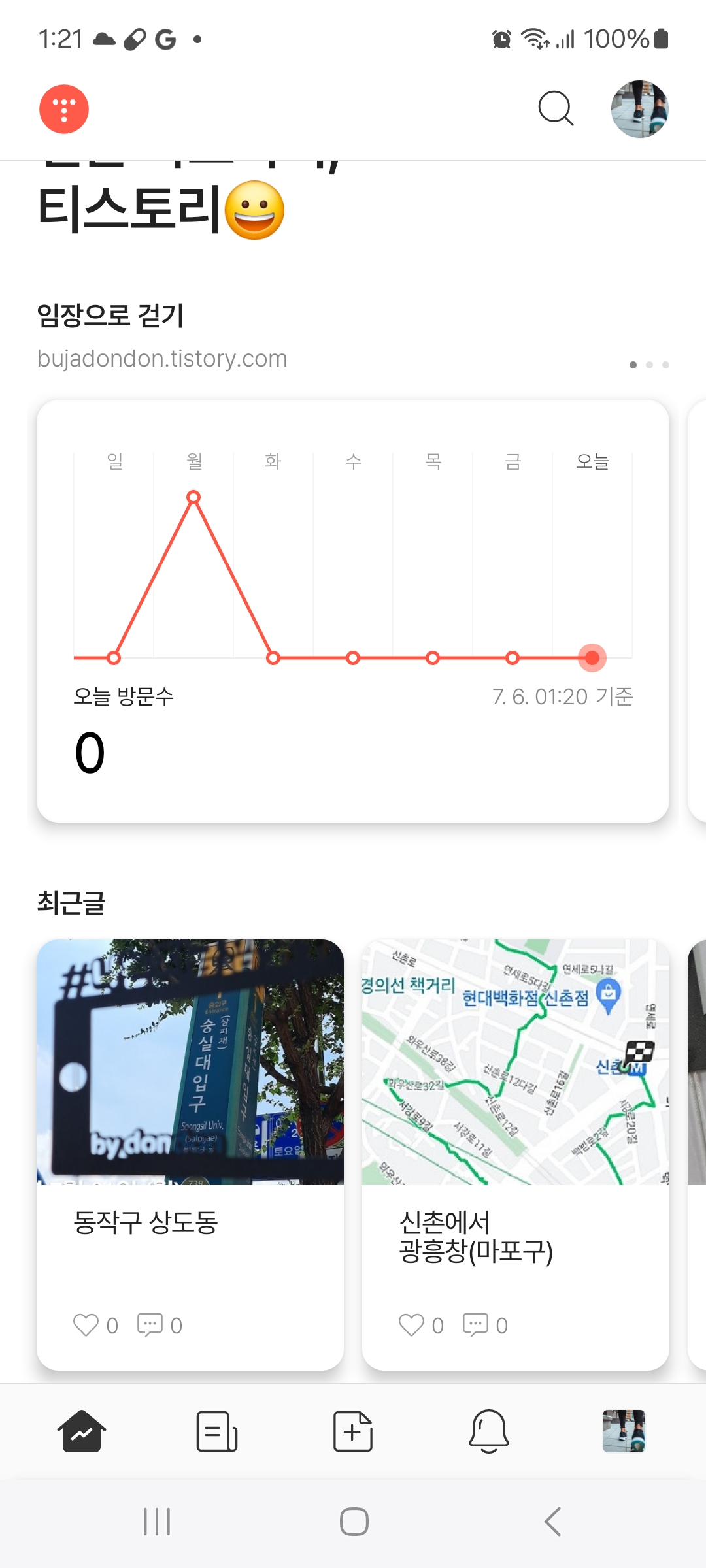 얼마 전에 티스토리에 블로그 계정을 만들었다가연동 아이디를 잘못 쓴 것을 깨닫고해지를 하고 다시 그 아이디로 만드느라거의 일주일 정도가 더 소요됐다. 나는 원래 네이버 블로거인데... 주 사용 사이트도 네이버고...그래서 티스토리는 정말 아직 하나도 모르겠다잡지 같은, 뭔가 사이트 같은 구성도 멋들어져 보이는데뭘 해야 할지 아직은 너무나도 막막한 초보 티스토리 블로거 ㅋㅋㅋㅋ 부동산 공부를 하다보니새로이 만나는 사람들이 많아지는 것 같은데,(지속적으로 연락할 사람들도 있겠지만)어쩌다 연락처를 줘야만 하는 경우 등에그간 일기처럼 기록했던 블로그와나의 기존 메일이나 연락처를 계속 돌리는 것은아닌 것 같다는 생각이 불현듯 들어서뜬금없이 전화번호도 하나 더 만들고이렇게 블로그까지 새로 하나 만들어봤다. 아직까지..